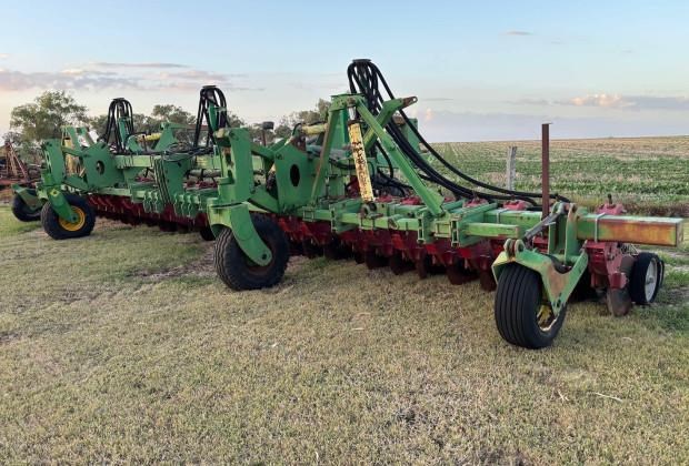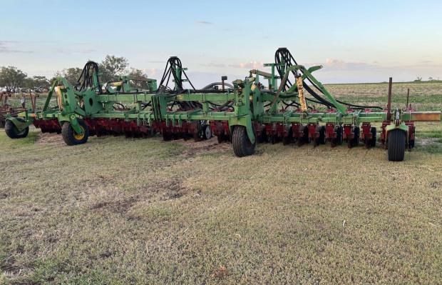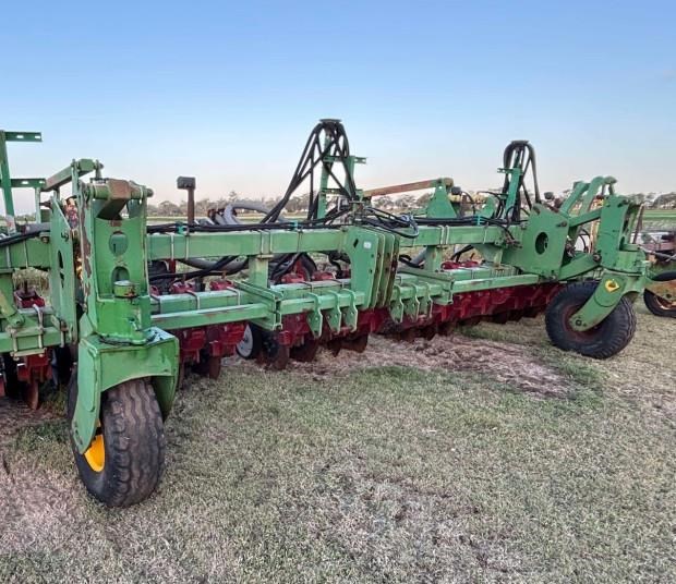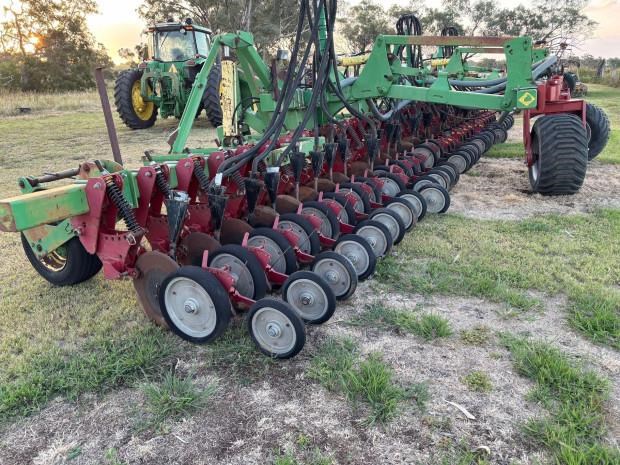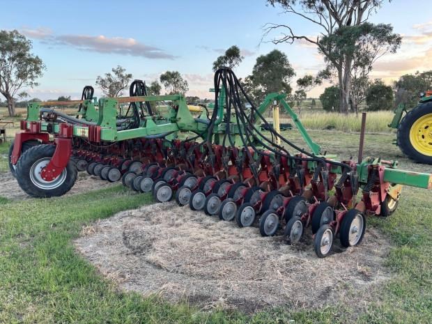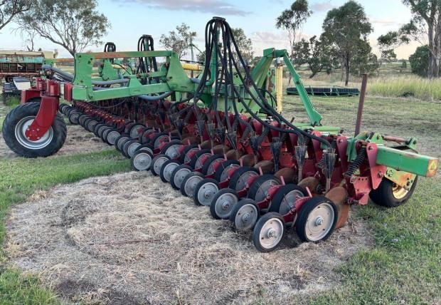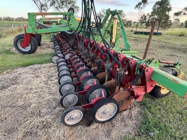 Daybreak Single Disc Planter, 12 metre folding toolbar, 3 point linkage attachment, multi position hitch, 30 Daybreak single disc planter units, 15 inch row spacings, front and rear lift assist wheels, air kit, spare parts for units included, good condition, located near Toowoomba Qld, price includes GST