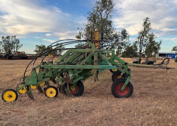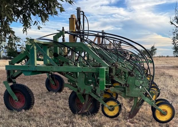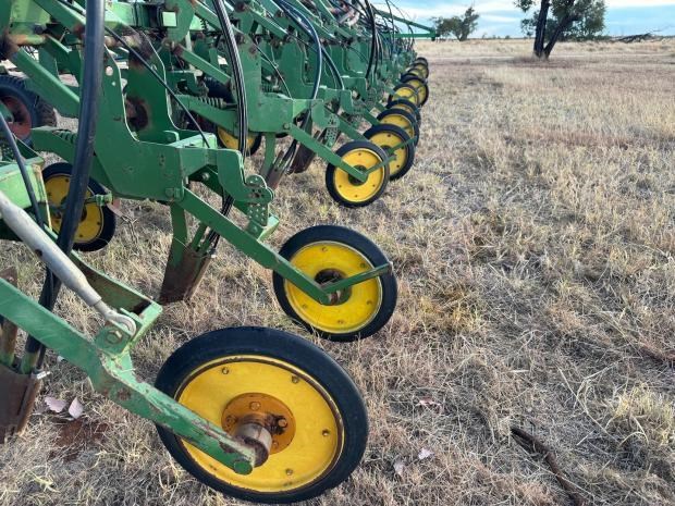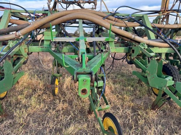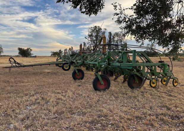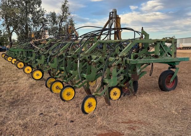 Garnelle Planter, trailing, custom built bar, 20 metre width, 2 bar deep, non folding bar, 40 x Garnelle paralellogram planter units, 500mm row spacing, no end tow kit, Gyral air kit, anhydrous gas kit with Raven controllers, set up for liquid fertiliser, numerous spare units and parts to go with machine, located near Clermont Qld, price includes GST