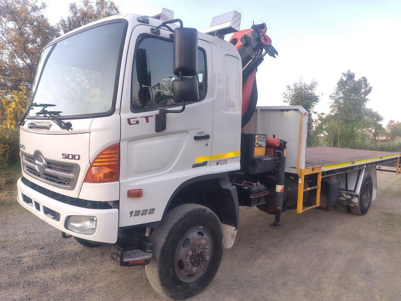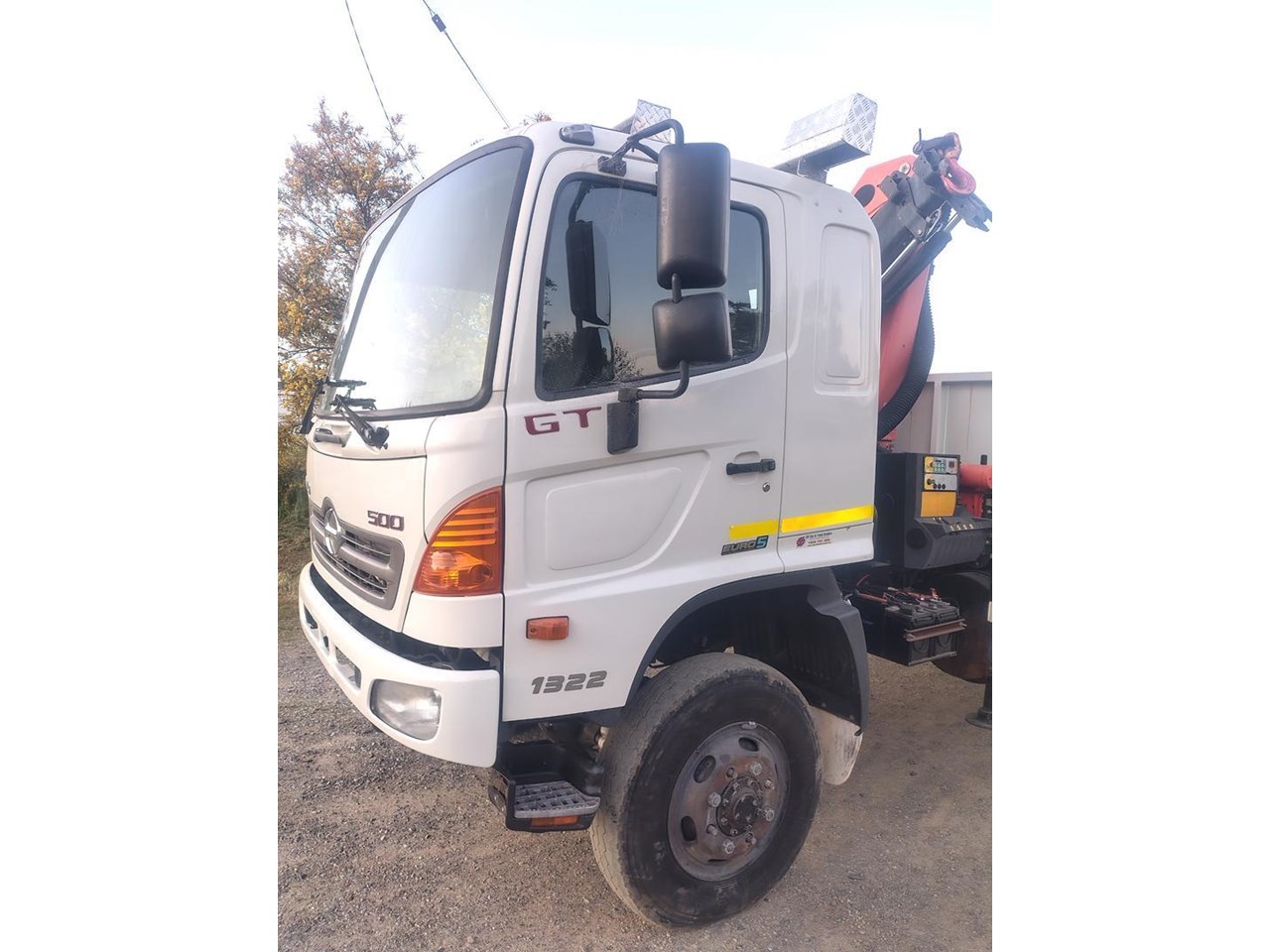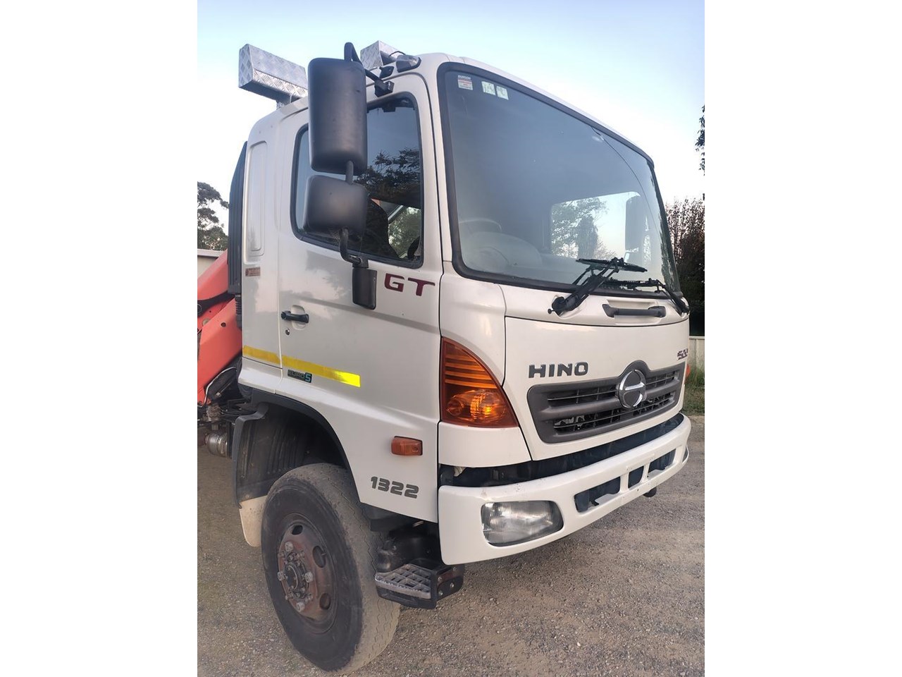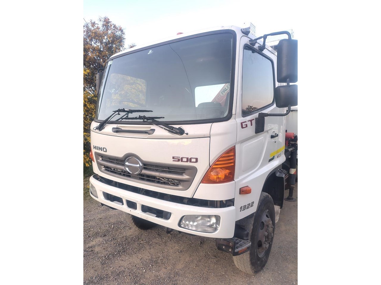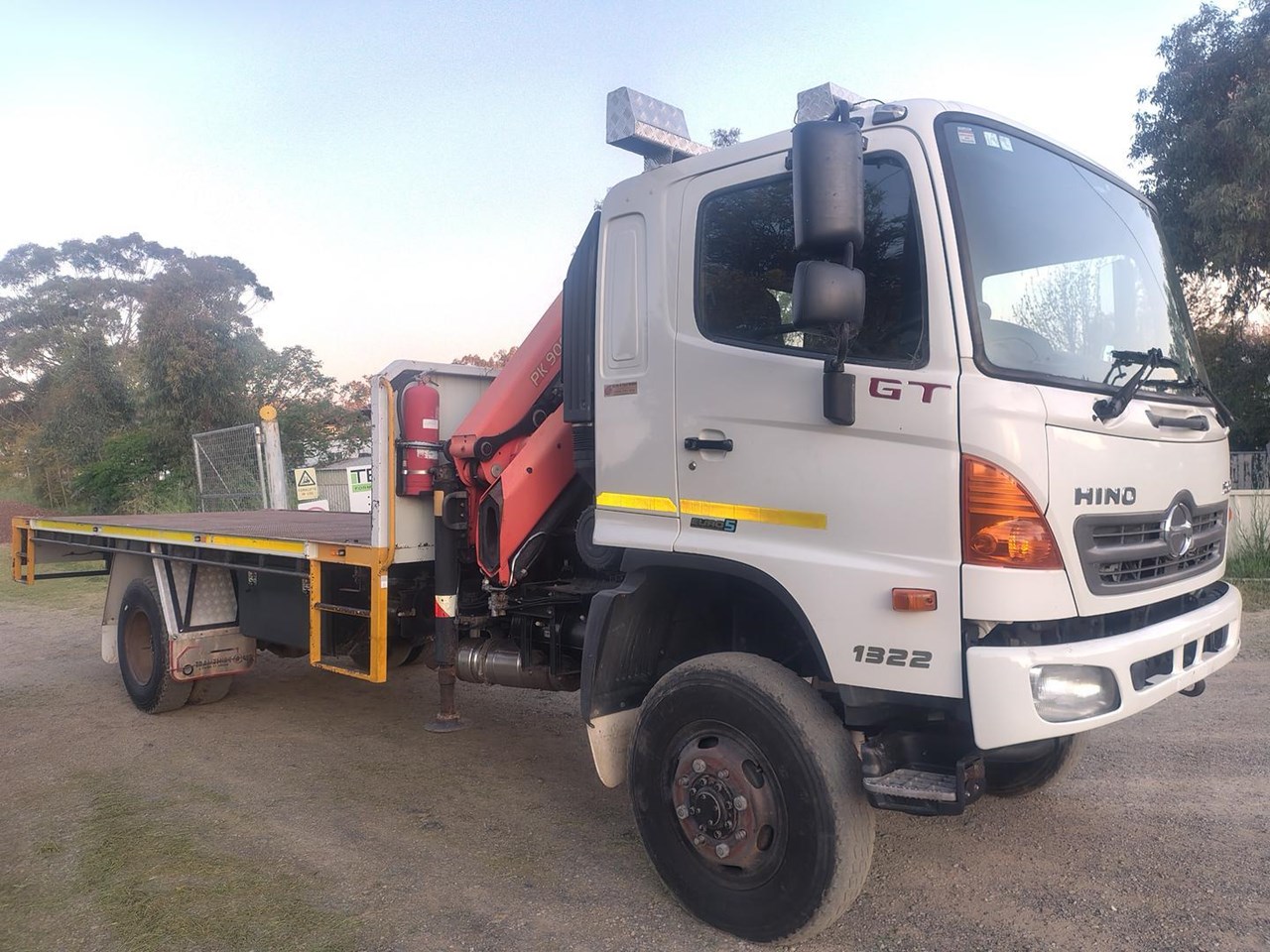 2012 Hino 500 GT 1322 4x4 Crane Truck, steel tray fitted with container pins, Fitted with Palfinger PK9001EH with remote, 13 t GVM, 21 t GCM. High and low range 4x4. 220hp turbo diesel intercooled with 6 speed manual gearbox Will be sold workshop checked, serviced and prepared for roadworthy.