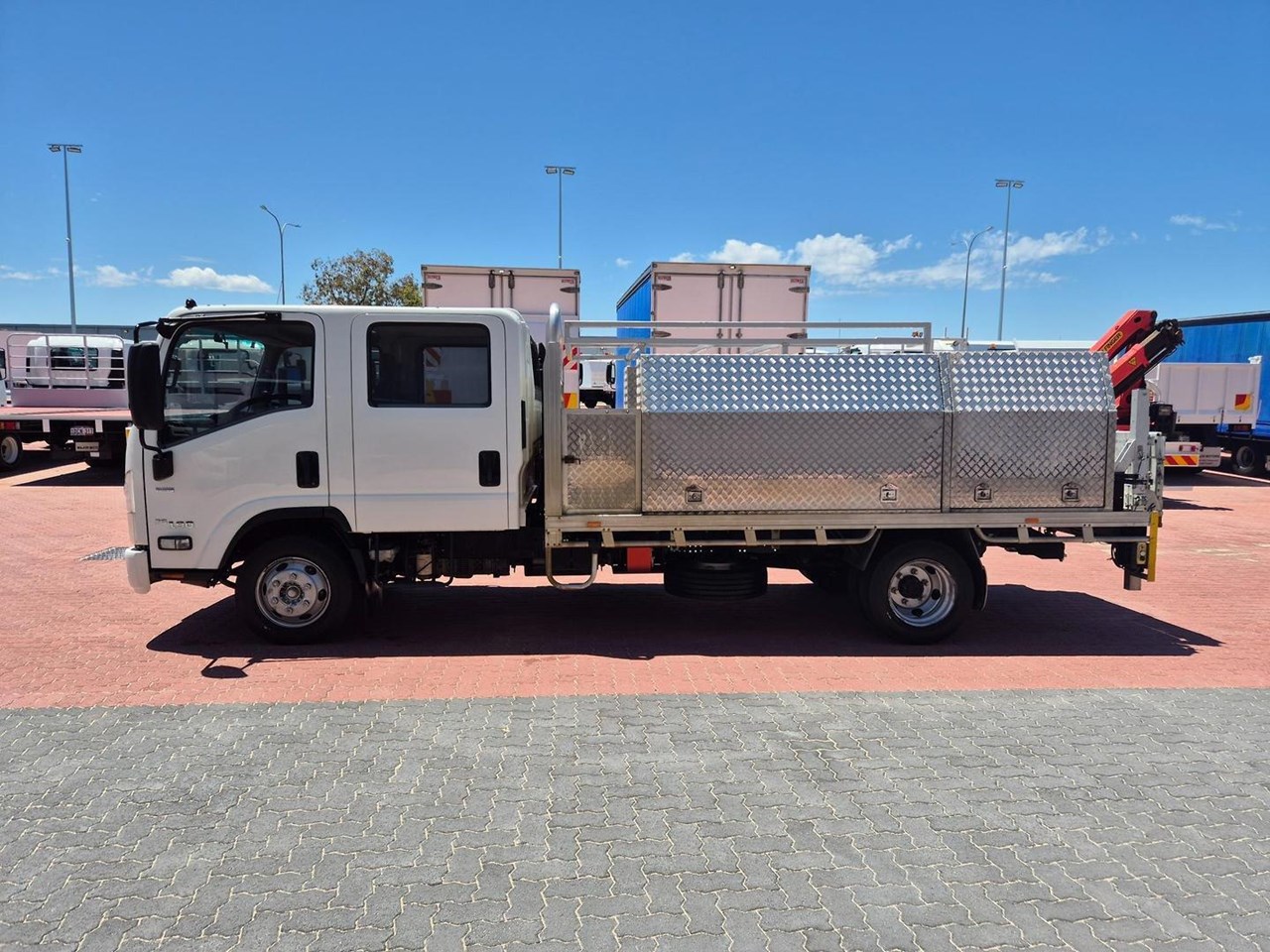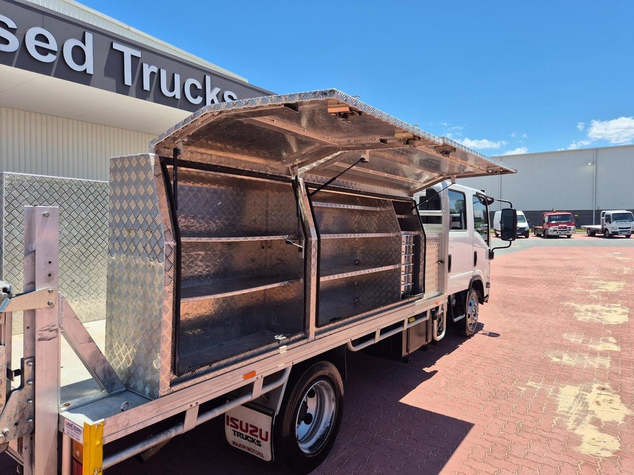 2019 Isuzu NPR75-190 AMT 4 ton Crew Cab with the Massive 190HP Powerplant coupled to a 6 Speed (Automated Manual Transmission) complete with a 4.1m Heavy Alloy Tray with Full Toolboxes down both sides and a 500kg Tommy Gate Lift at the Rear.