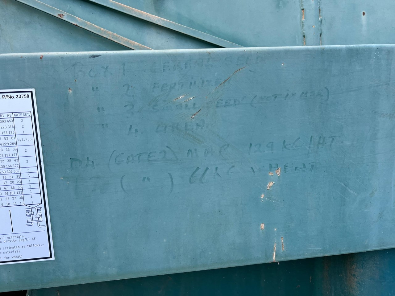 - Double shoot boots and "Ag Master" rolling harrows.