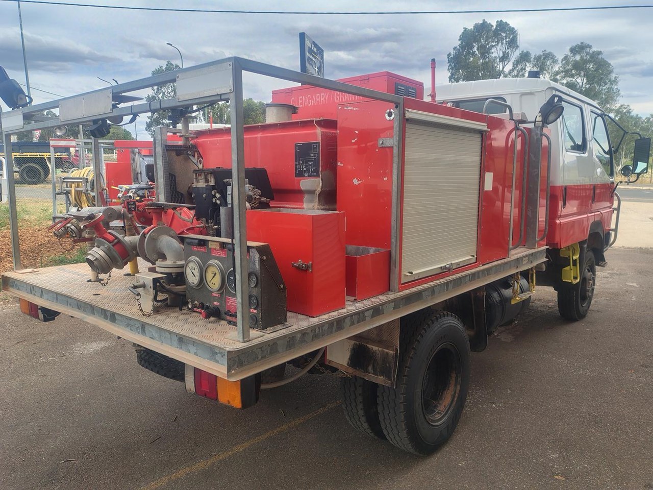 1999 Mitsubishi Canter 500/600 4x4 Crew Cab FireTruck, direct from government, fully equipped fire truck, galvanised water tank, diesel pump with Gaam pumpset with foam and crew protection. Air conditioned, currently six seats with a 7th seat available. Also available as a tray top truck. Also available 2007 Mitsubishi Canter 4x4 Firetruck, and a 2003 Canter 4x4 Dualcab Firetruck, both low km and factory turbo