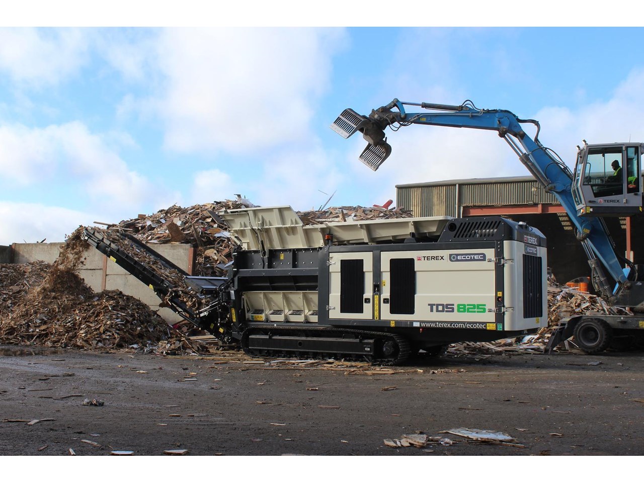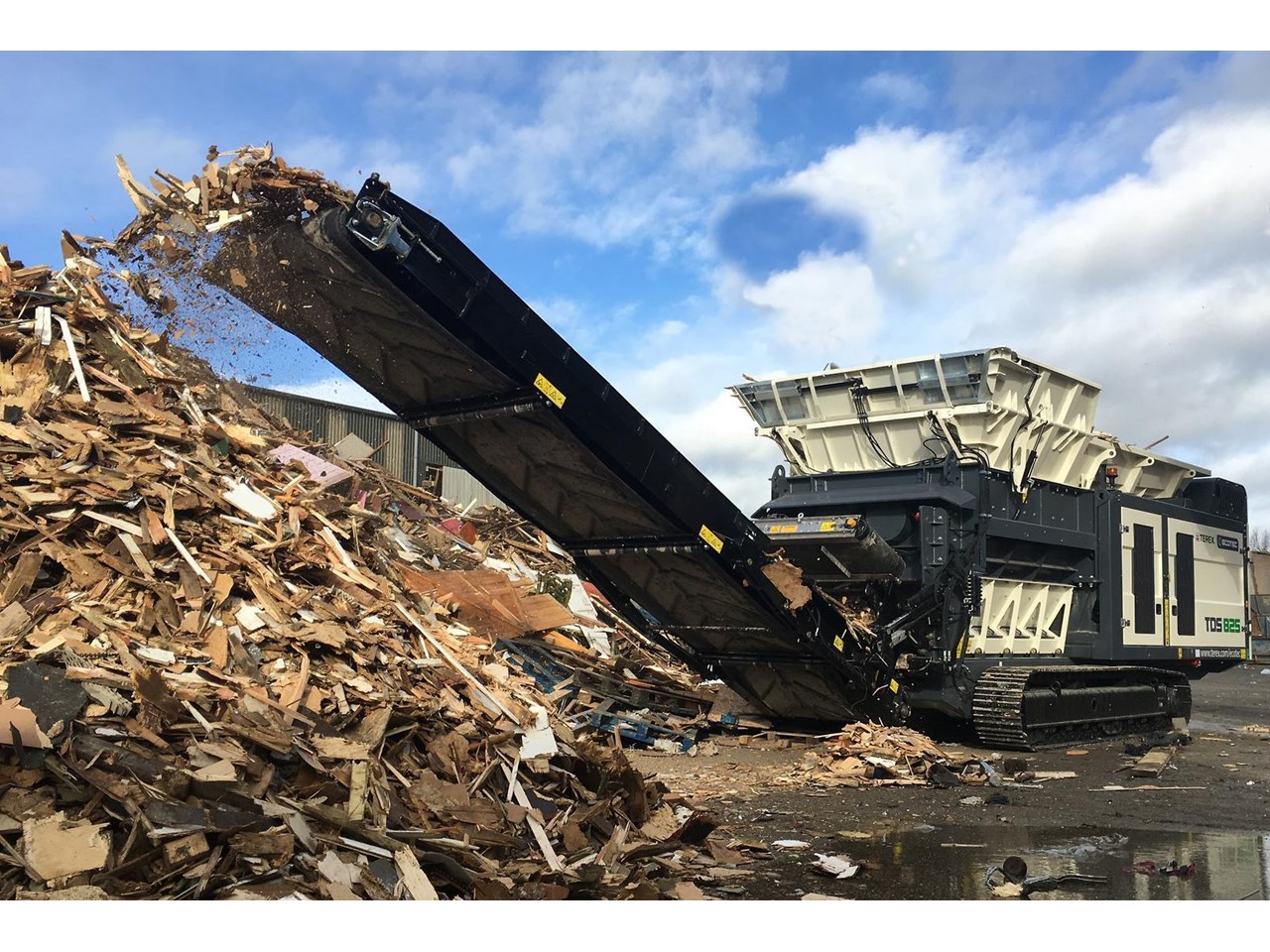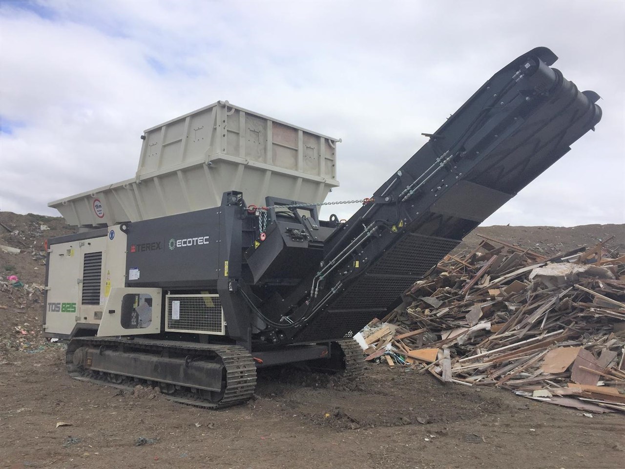 Powered by a 770HP Scania V8 DC16 engine, the machine has been designed to provide operators with unrivalled levels of service access. The high volume, tipping hopper increases the feed area providing optimum material feed and can be activated using the control panel or via the remote control. Hydraulic folding hopper extensions allows for increased capacity, preventing the infeed material from falling out especially in bulky applications. The TDS 825 is manoeuvred via a robust tracked undercarriage making it a great solution for difficult terrain.
